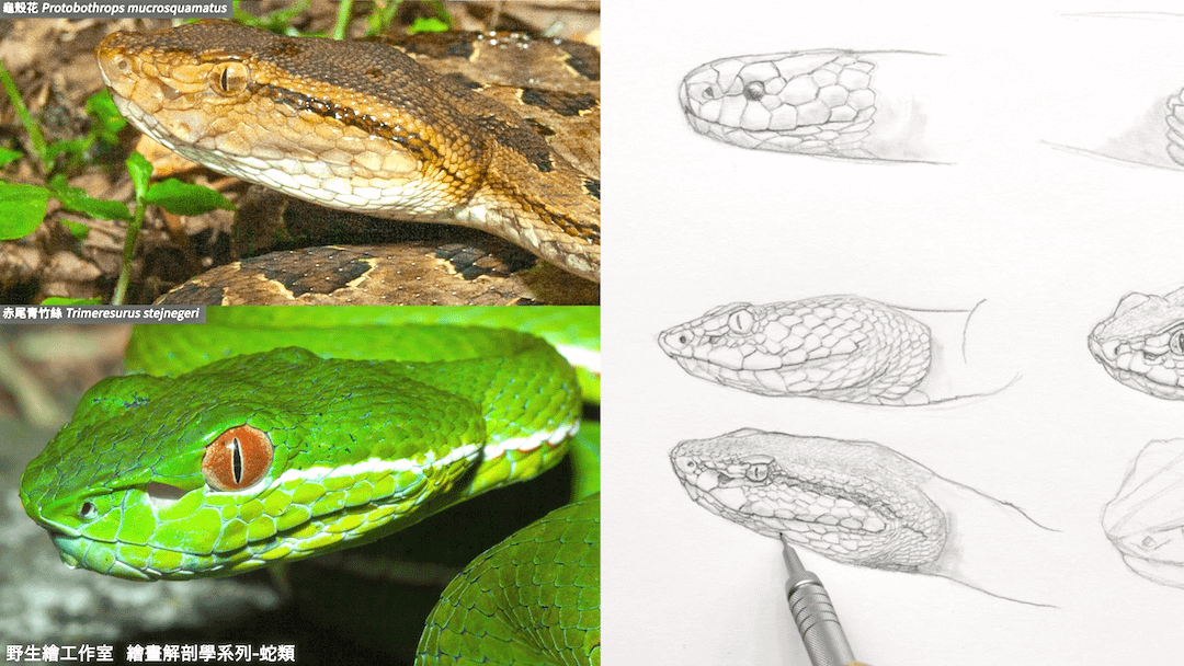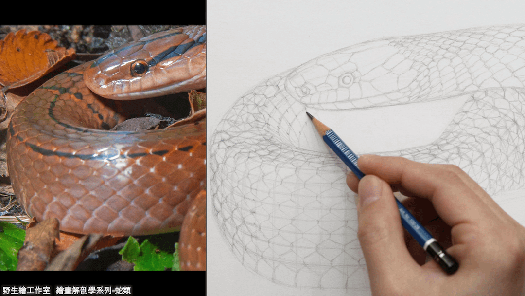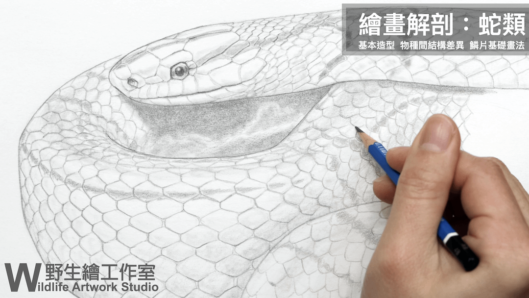 蛇類是較冷門的動物類群,蛇類的繪畫教學更是極其稀少,市面上的教學內容通常只在眾多動物類群中簡單帶過,鱗片畫起來總有說不出的怪,那些課程是否無法滿足您想畫出蛇類真實型態的慾望。